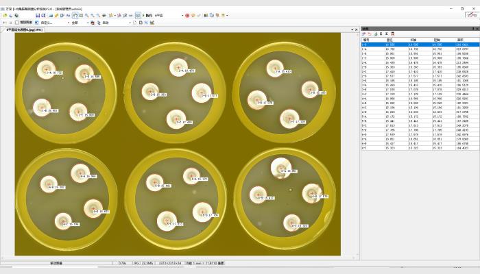 (2)保真的可視化比對、編輯功能。抑菌圈測量系統的讀數分辨率≤0.001mm、同時分析6碟培養皿≤8秒,以標準模板計旋轉360°測量精度誤差≤±0.05mm;以標準模板計的示值準確度誤差≤±0.05mm;重復測量誤差≤±0.01mm;效價測量精度誤差≤±0.3%,臺間測量誤差≤±0.3%。