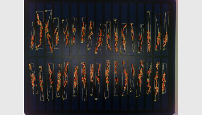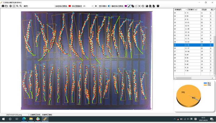 5、★自動數粒誤差<±2.0%,極少量添加、刪除修正,可達100%正確。各級枝梗長的自動測量誤差<±1.5mm,可鼠標編輯修正以接近100%正確。